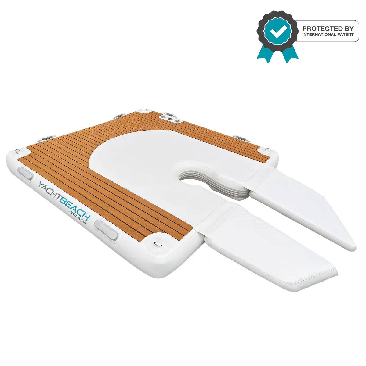 YACHTBEACH FOIL DOCK SINGLE delivers a stable mooring and service area for PWCs, toys, or tenders. Sized 2.05 x 2.05. Reinforced handles, heavy‑duty valves, and robust drop‑stitch chambers ensure durability for daily yacht or resort operations.