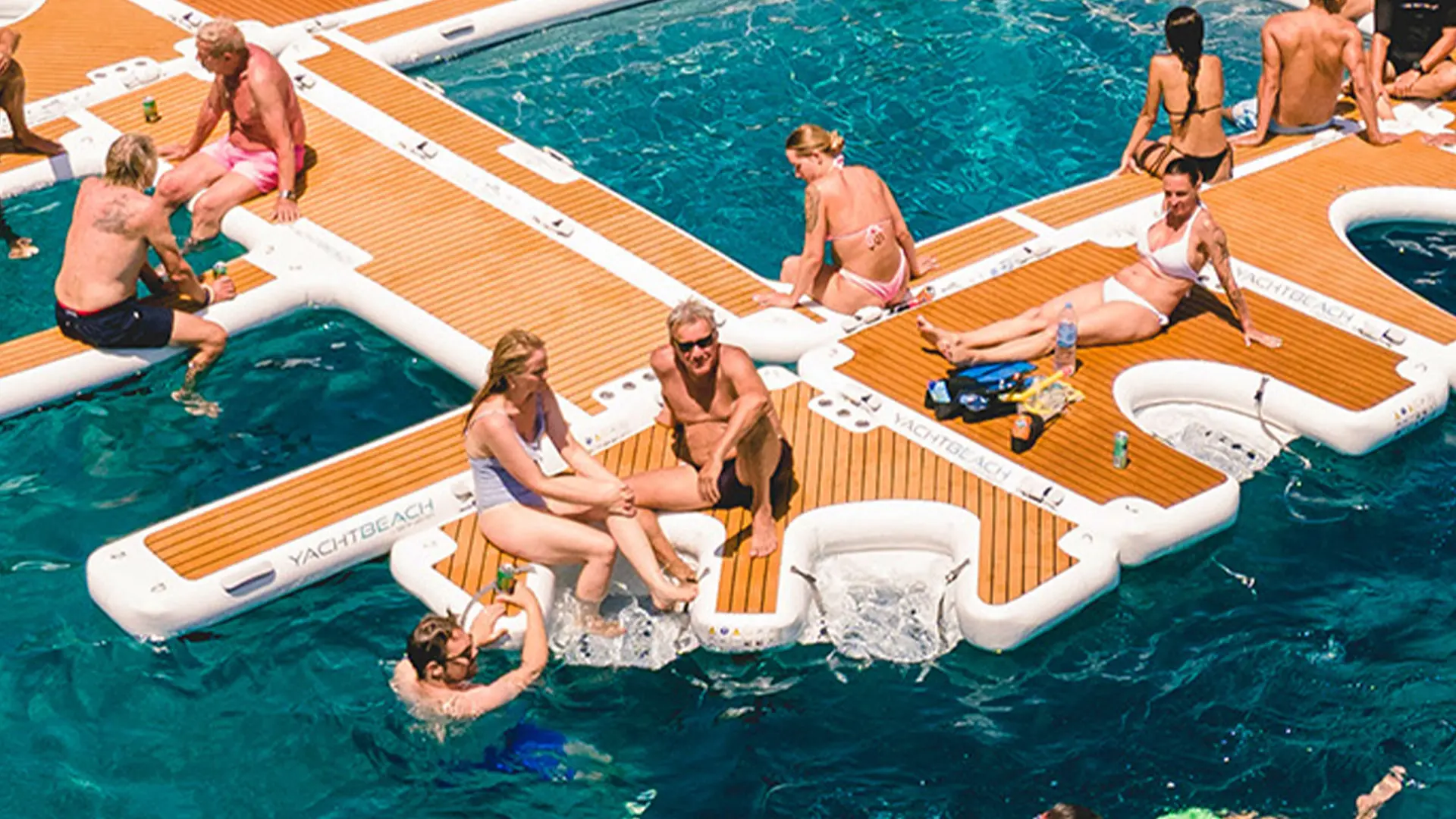 YACHTBEACH MULTI DOCK AND LOUNGER DOUBLE delivers a stable mooring and service area for PWCs, toys, or tenders. Sized 2.05. Reinforced handles, heavy‑duty valves, and robust drop‑stitch chambers ensure durability for daily yacht or resort operations.