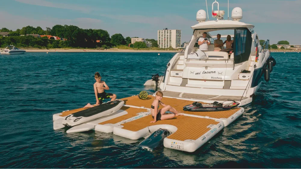 Stable inflatable dock for PWC, toys, and tender access.