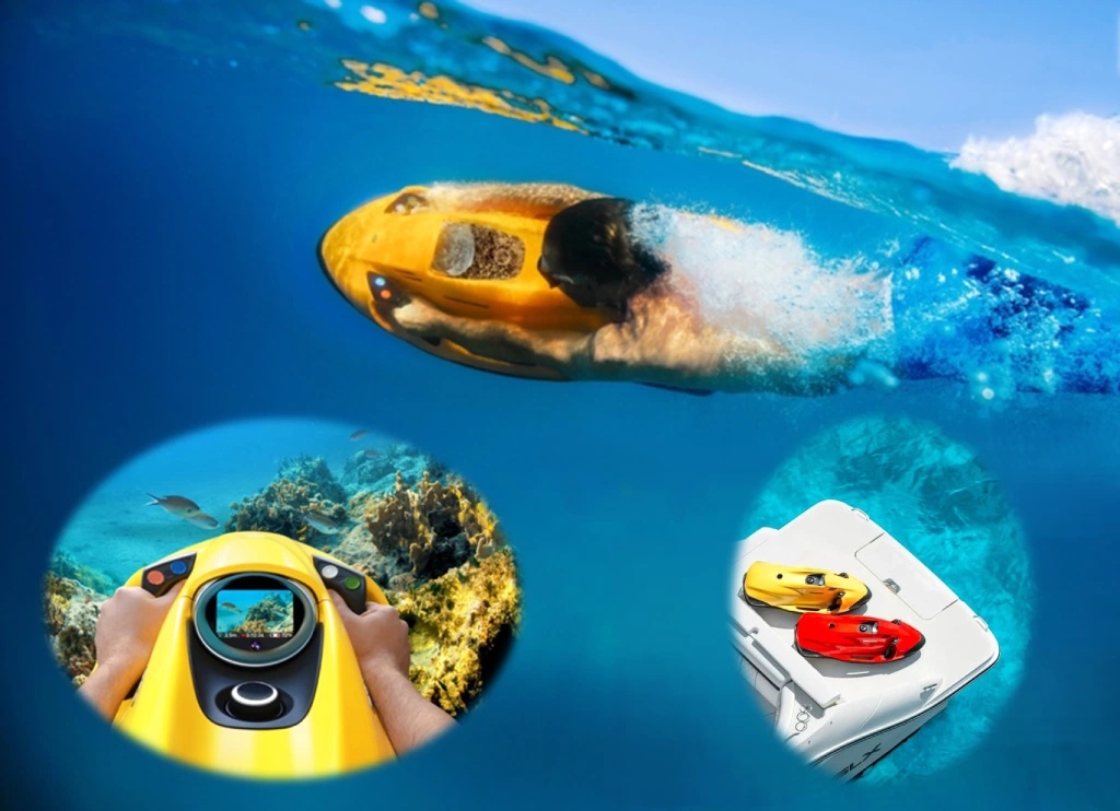 Seabob transforms the ocean into your playground. Use it to explore reefs, lagoons, and open water, or simply enjoy the thrill of high-speed gliding on the surface. Perfect for yacht owners, charter guests, and resort operations, it’s equally suited to underwater exploration or adrenaline-fueled fun. Lightweight, portable, and crafted to last — Seabob is the ultimate lifestyle accessory for the water.